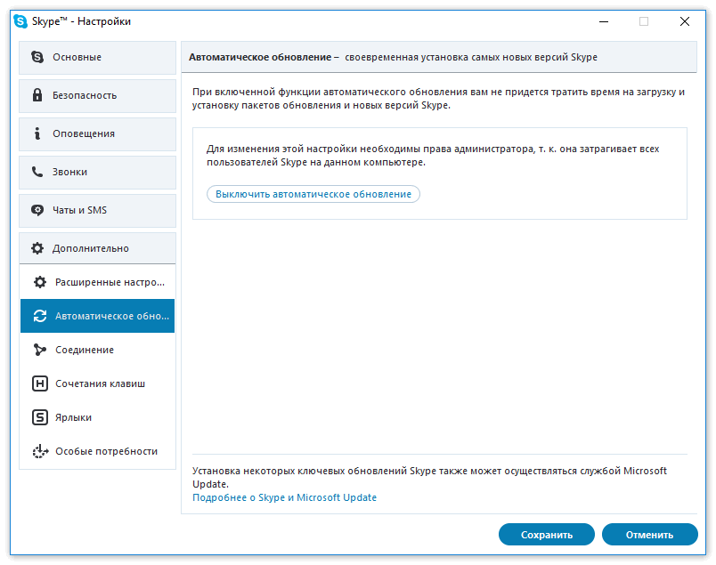 Вполне вероятно, что именно Skype не пропускает видеосвязь. В таком случае зайдите в категорию «Помощь» и нажмите вкладку «Проверить наличие обновлений».