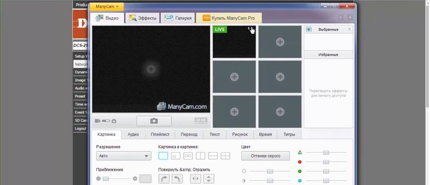 Ну, а для любителей разных фенечек, ManyCam научили перехватывать потоковое видео и добавлять туда всевозможные эффекты, вроде тех, что позволяет добавить фирменный софт, поставляемый с обычными веб-камерами.