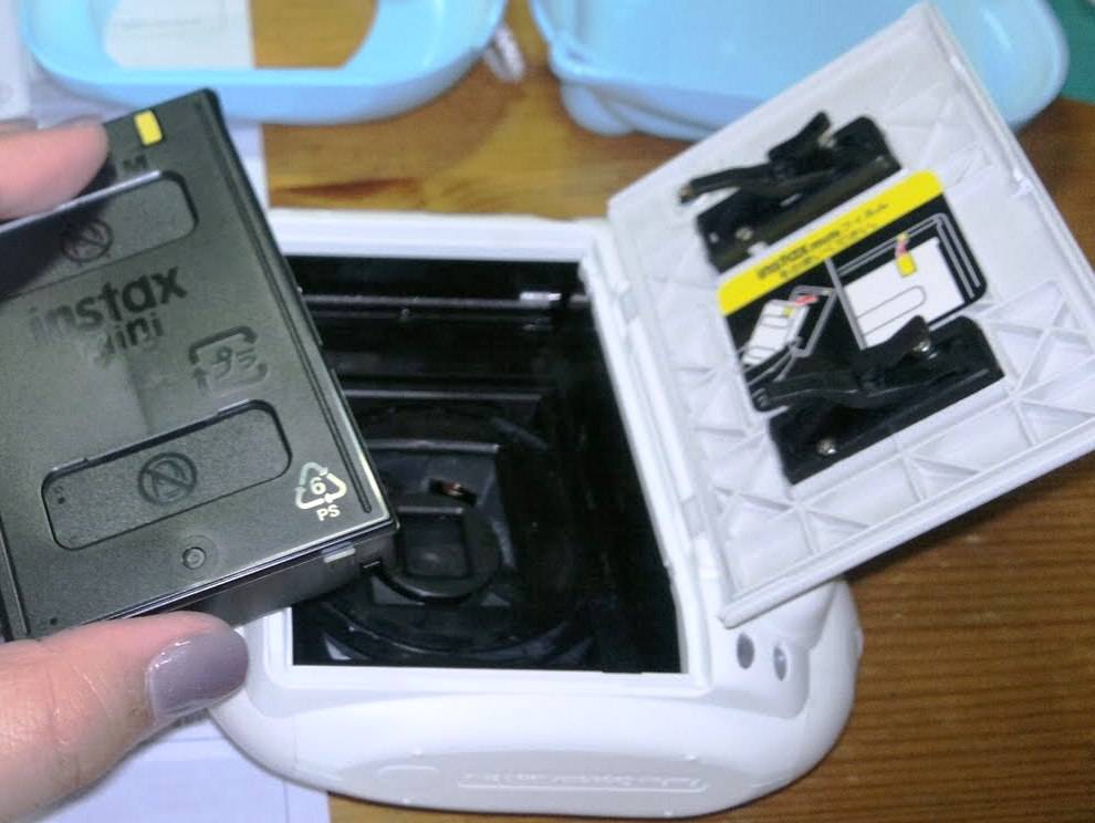 У одного из торцов фотоаппарата Instax предусмотрен отсек для вывода готовых снимков. Чтобы напечатать моментальное фото в устройство должен быть вставлен специальный картридж.