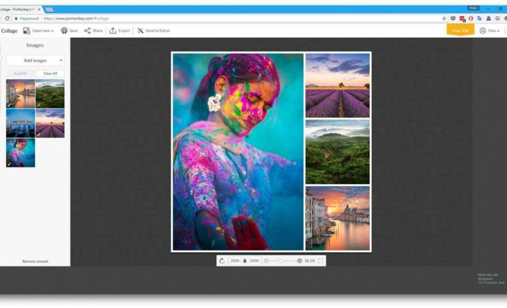 Коллажи, удаление фона и прочие полезные функции есть только в платной версии
