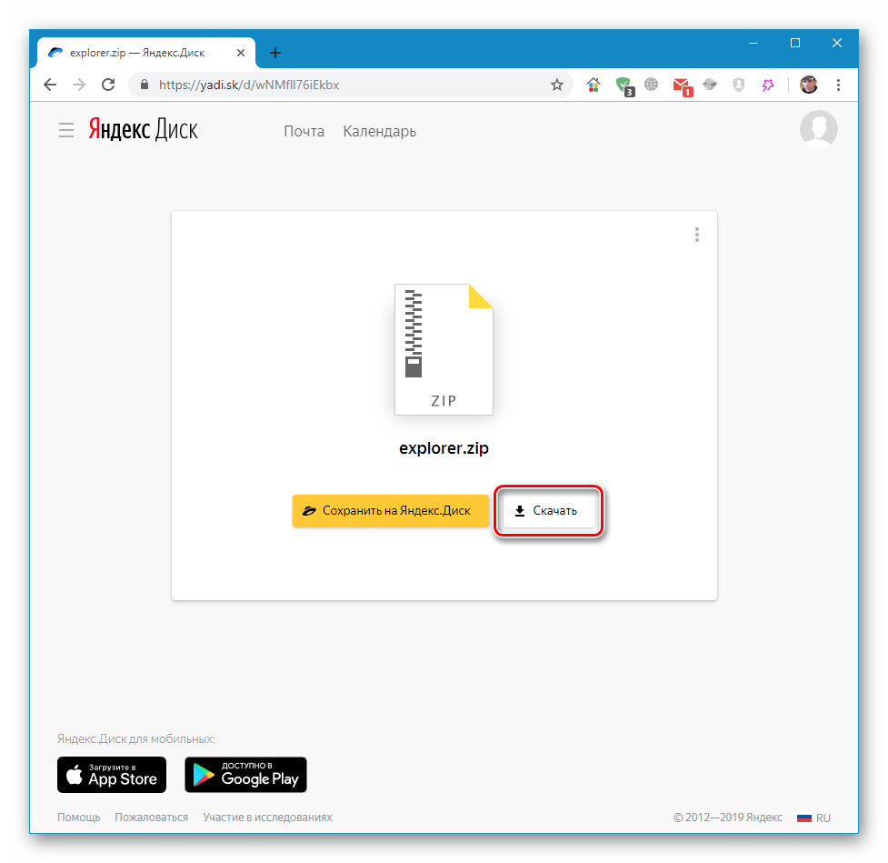 Здесь предоставляется выбор из двух возможностей: скачать на компьютер или в своё хранилище Яндекс.Диск. В первом случае нажимают на кнопку «Скачать». Во втором — на «Сохранить на Яндекс.Диск».