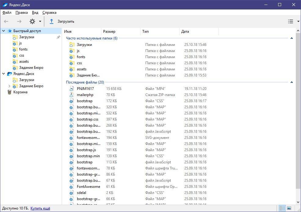 Для загрузки можно воспользоваться фирменным приложением. Его необходимо скачать и установить. Для получения можно воспользоваться следующей ссылкой. После инсталляции на рабочем столе пользователя будет создана папка, имеющая то же название, как и сервис. Обладатели Windows 10 смогут увидеть строку «Яндекс.Диск» в проводнике.