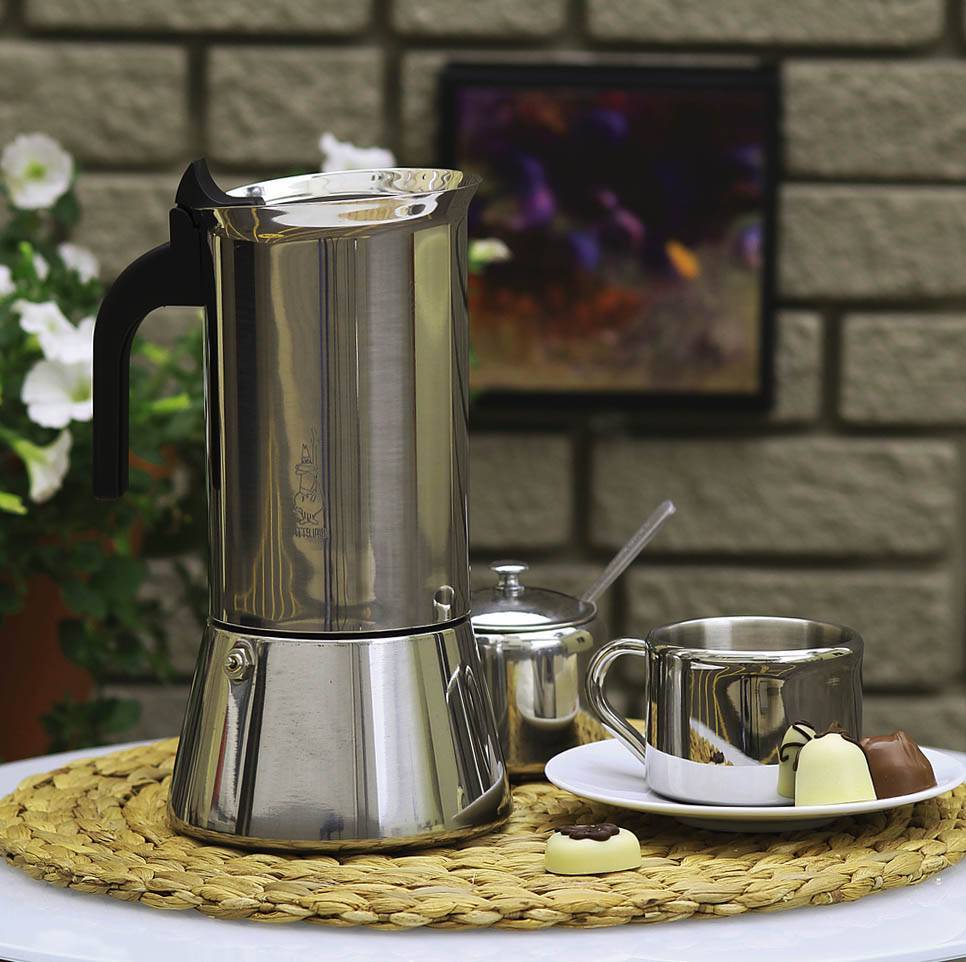 - Индукционная плита — обгоняет по скорости газовую, но нужно помнить, что на такого вида плитах используют специальную посуду и приспособления, однако, об этом Биалетти так же озаботился и запустил в продажу индукционные моки.
