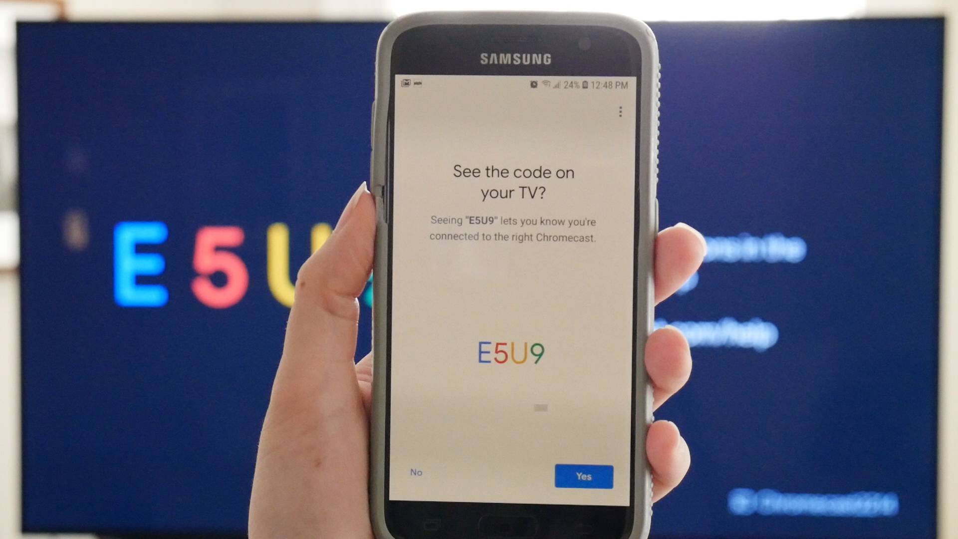 Нажмите «Да», и ваше устройство подключится к Chromecast. Теперь ваше устройство отобразит код, который должен соответствовать коду на вашем телевизоре. Если он совпадает, нажмите «Да».