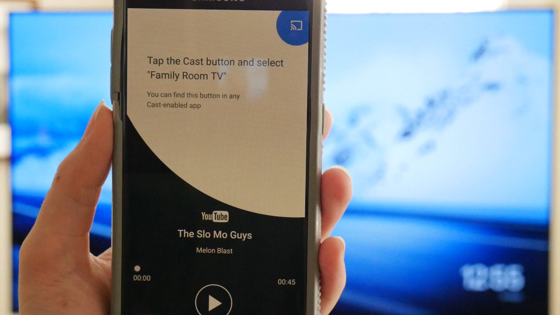 Чтобы узнать, как это сделать, выберите один из примеров, которые Google предоставляет в приложении. Нажмите кнопку трансляции, выберите свой псевдоним Chromecast и посмотрите его на большом экране.