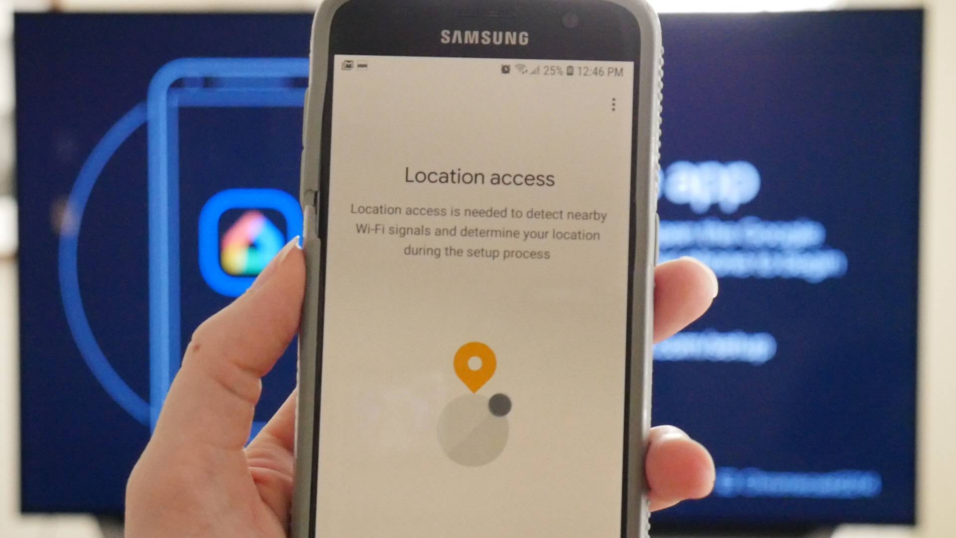 Приложение Google Home запросит доступ к местоположению, который необходимо включить, чтобы завершить настройку Chromecast.