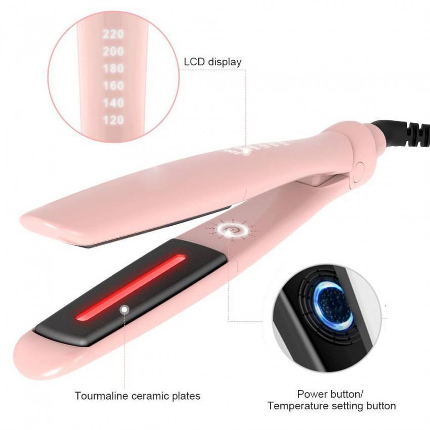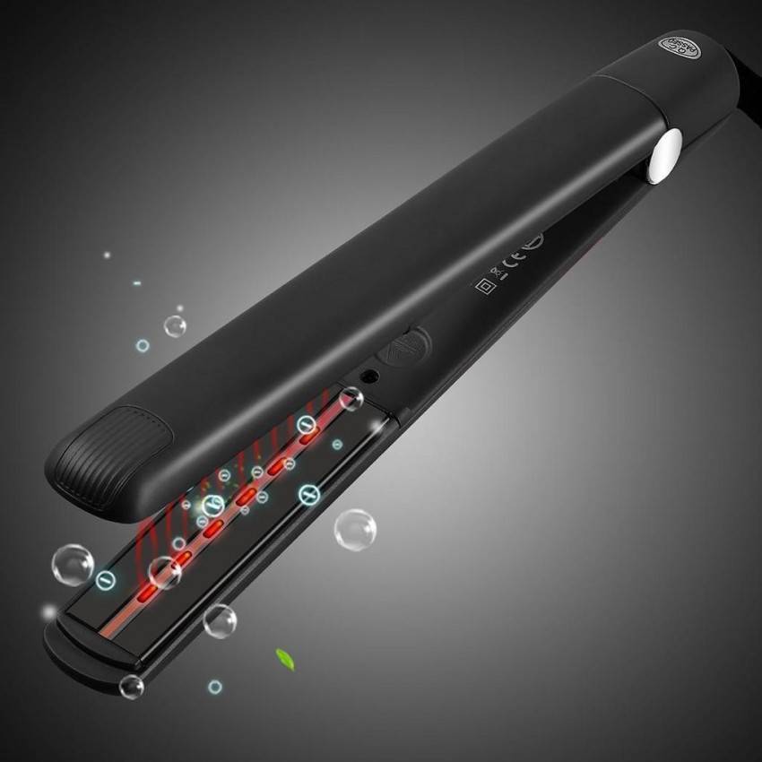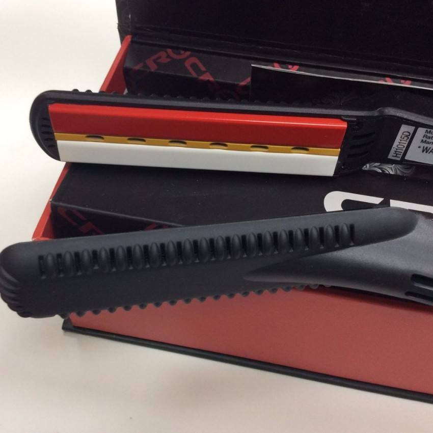 Это ещё один профессиональный инфракрасный утюжок для волос, часто применяемый в салонах красоты. Длина его корпуса — 35 см, размер пластин 57 на 100 мм. Производитель даёт год гарантии на своё устройство. Утюжок воздействует на волосы инфракрасными лучами и ультразвуковыми волнами через турмалиновые пластины.
