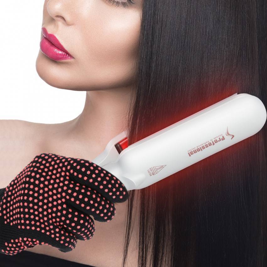 Устройство оснащено двумя пластинами. Одна из них инфракрасная, а вторая — ультразвуковая. Применение такой технологии обеспечивает прядям лечение. Они становятся объемнее, укрепляются и приобретают блеск.