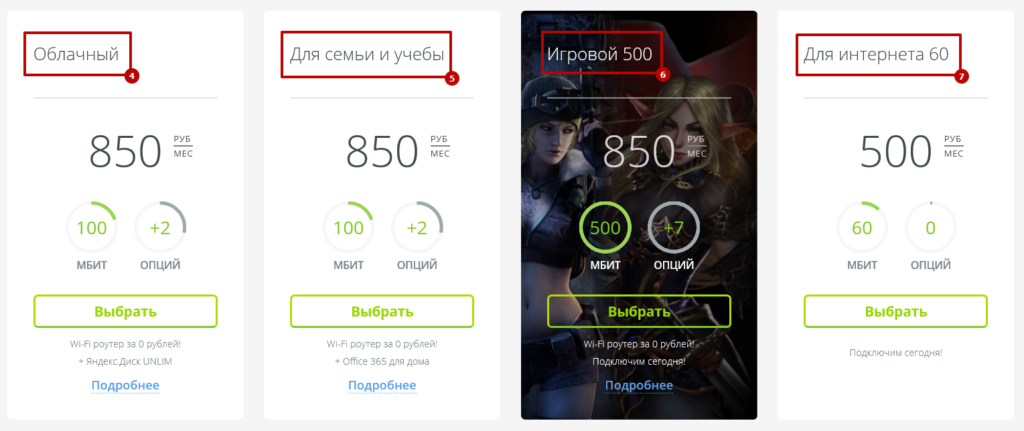 - Игровой 500. Цена — 850 р. каждый месяц. Скорость – 500 Мбит. Тариф идеально подходит для любителей онлайн игр и интернет развлечений. Входящие опции: