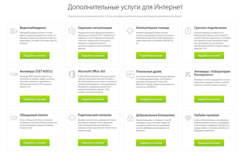 В качестве дополнительных услуг домашний интернет онлайм предлагает для своих клиентов: