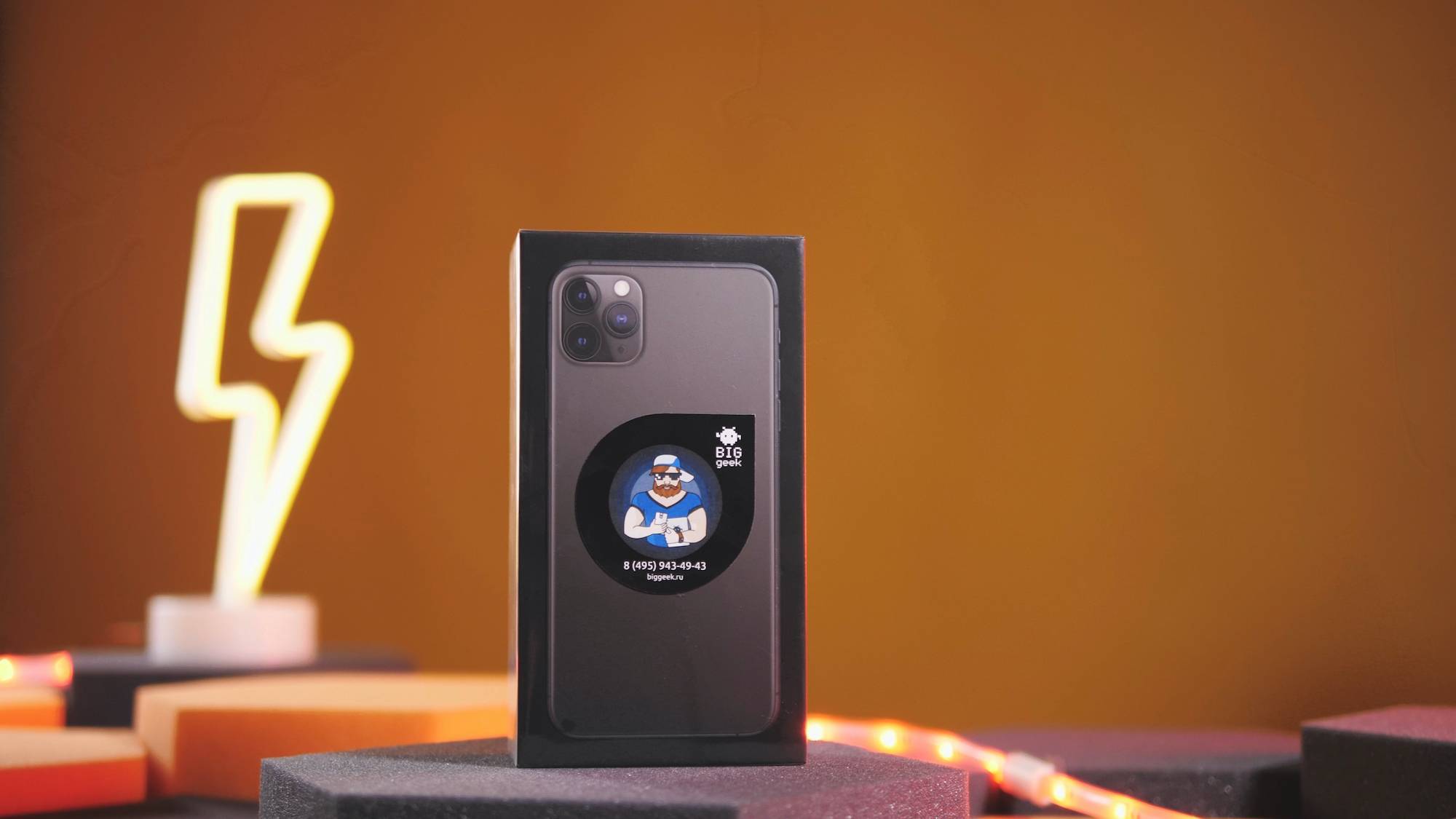 Конечно же, новые айфоны изменились внешне. Например, о принадлежности к «профессиональным устройствам» компании нам теперь говорит и чёрная коробка с изображением задней панели смартфона с внушительным блоком тройной камеры.