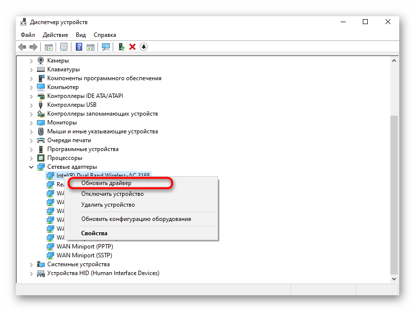 Иногда доступ к сети отсутствует как раз из-за недостающих или устаревших сетевых драйверов, что приводит к появлению конфликтов на программном уровне. Особенно это относится к сетевым адаптерам и модулям Wi-Fi, которые были приобретены пользователем самостоятельно. Рекомендуем обратиться к статьям по ссылкам ниже, чтобы узнать информацию об обновлении драйверов, реализовать эту операцию и узнать, дало ли это эффект.