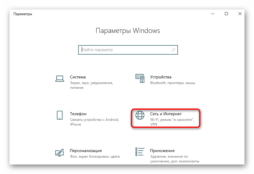 - Для этого через меню «Параметры»перейдите в «Сеть и Интернет».