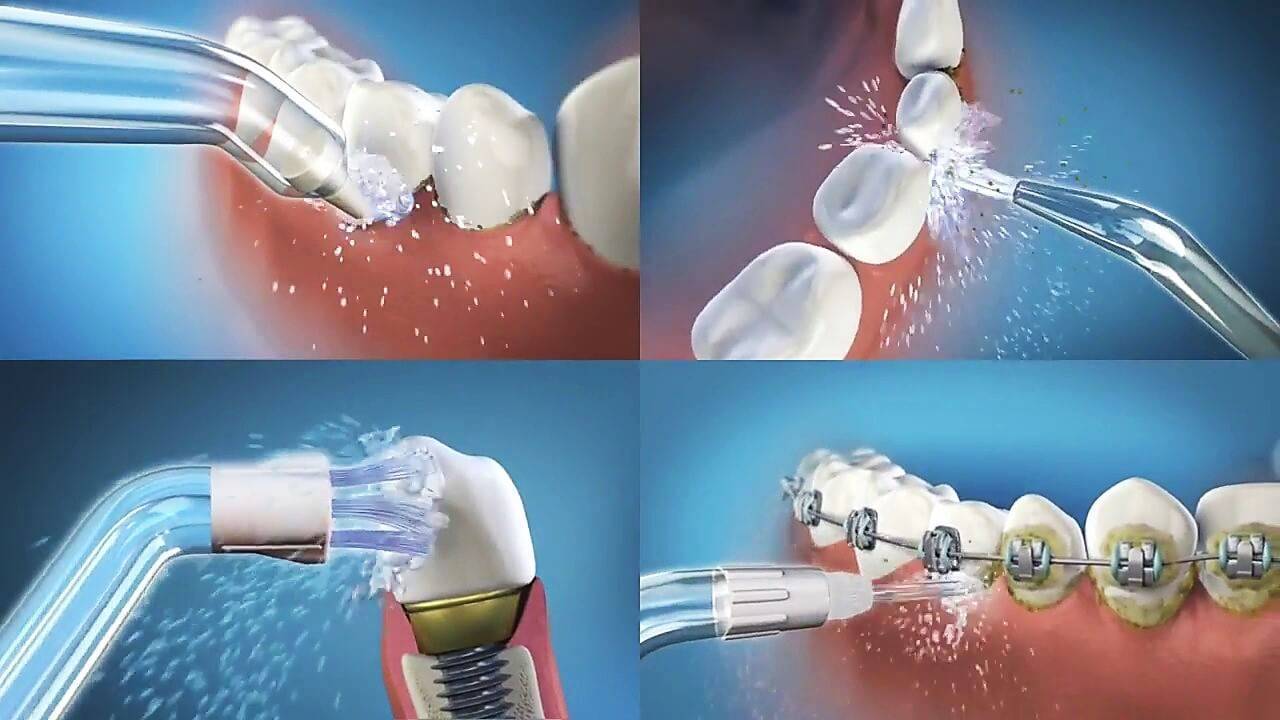 Как правило, это устройство используется после чистки зубов щеткой и зубной нитью. Струя ирригатора вымывает