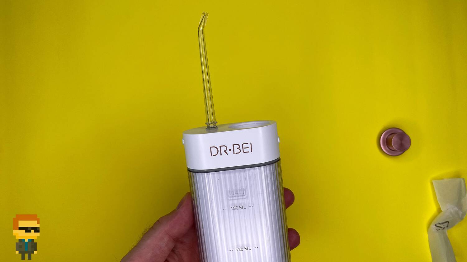 Одно из главных достоинств портативной модели — большой резервуар для воды, аж 230 мл. Для портативных ирригаторов это много. Поверхность имеет резиновые участки и частично покрыта пупырышками, поэтому устройство удобно держать в мокрых руках