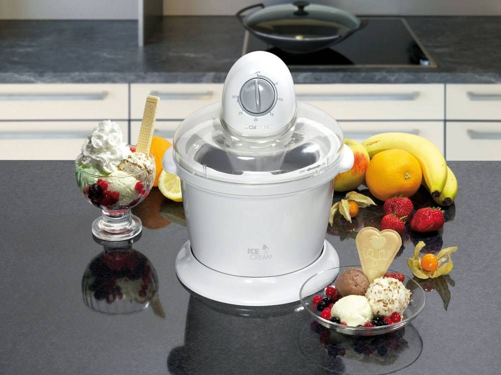 В отличие от миксера, который только смешает все ингредиенты, мороженица обеспечивает равномерное промерзание смеси. В обычной морозильной камере на поверхности образуются кристаллы льда, мороженое вкусным не получится: лед (замерзшая вода) будет хрустеть на зубах.
