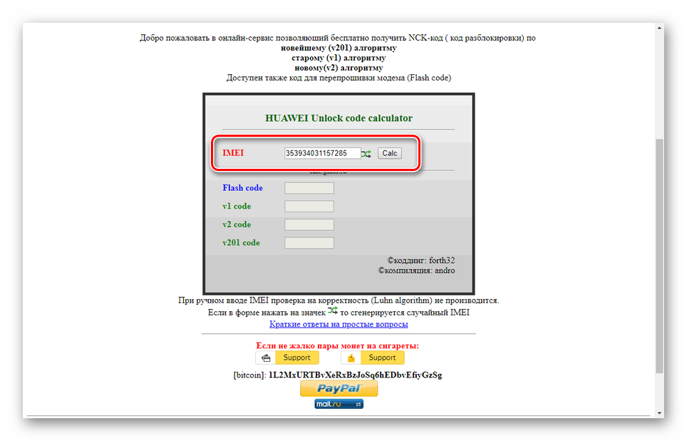 Перед установкой следует убедиться, что данная модель поддерживается сиим ПО. Опосля установки и пуска обязано показаться окно с запросом пароля разблокировки. Данный код базируется на IMEI устройства, но для его определения необходимо пользоваться иной програмкой, к примеру, HuaweiCalculator.