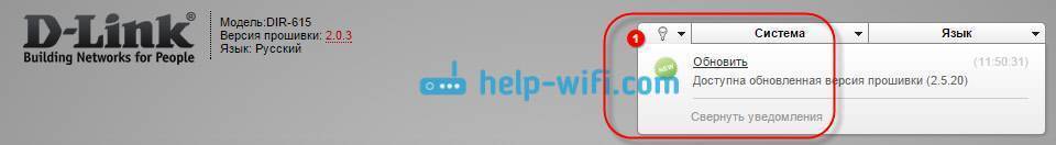 Внимание. Если вы не найдете в настройках своего роутера возможность автоматического обновления ПО, или ваша панель управления будет отличаться от той, которая будет на скриншотах ниже, то сначала обновите ПО до последней версии способом, который я описывал выше.. После входа в настройки роутера D-Link, вы сразу можете видеть сообщение о том, что есть новая версия прошивки