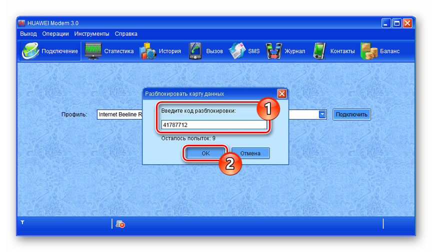 Примечание. На всех устройствах Билайн по умолчанию даётся 10 попыток для снятия блокировки. Если вам выбьет меньшее число, значит, ранее оборудование уже пытались перепрошить.