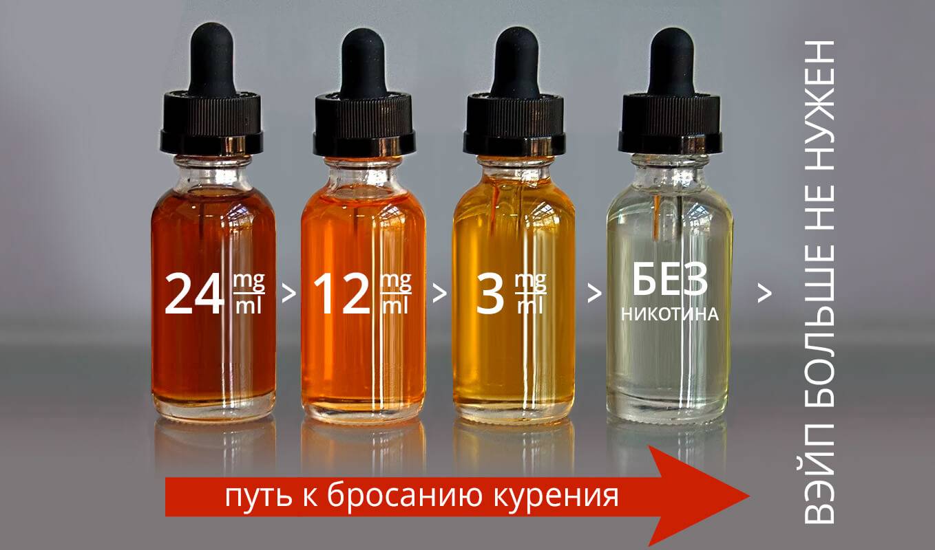 По опыту людей, которые таким образом бросили традиционное курение, наиболее комфортным снижением никотина считается 3 мг/мл в две недели.