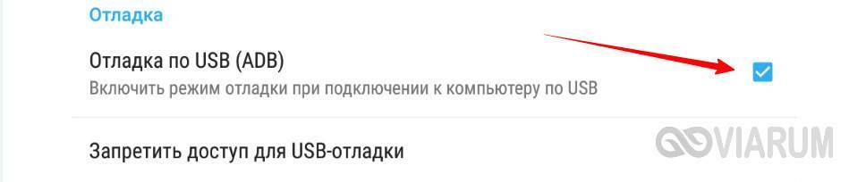 - Подключите смартфон к компьютеру с помощью USB-кабеля. На смартфоне должен быть активирован режим «Отладка по USB». Как его включить смотрите на этой странице выше.