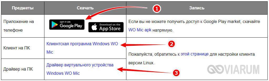 Теперь посмотрим, как подключить микрофон телефона к компьютеру с помощью еще одного бесплатного приложения WO Mic. Оно также предназначено для трансляции голоса со смартфона на компьютер, но при этом имеет более продвинутый функционал. Программа работает по принципу клиент-сервер, то есть вам нужно будет установить ее мобильную версию на телефон, а десктопную – на компьютер. Android-версию найдете в Google Play, клиент для Windows скачиваем с официального сайта wolicheng.com/womic. Помимо клиентской программы вам придется загрузить и установить драйвер виртуального устройства Windows WO Mic.