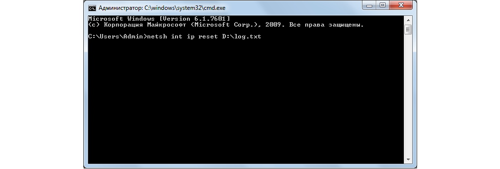 - Введите команду «netsh int ip reset ». К примеру, если Вы хотите, чтобы текстовый файл с отчетом назвался log.txt и был сохранен в корне диска D, необходимо ввести команду «netsh int ip reset D:\log.txt». Вы можете задать любой путь для сохранения и любое имя.