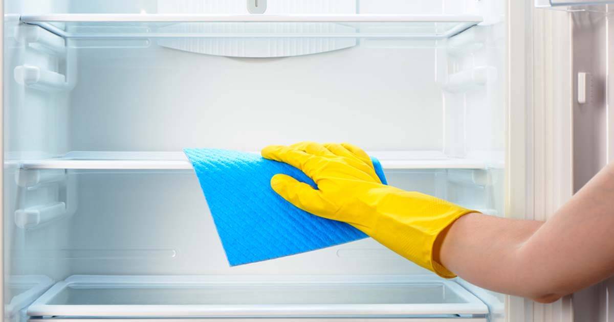 Протрите стенки холодильника тряпочкой, смоченной в растворе уксуса.