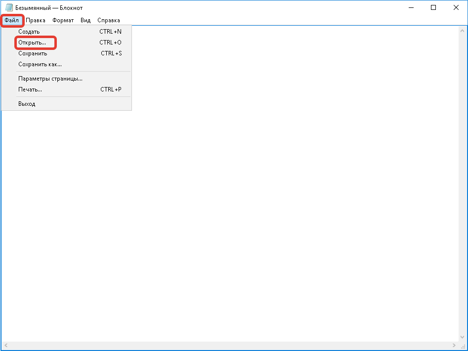 - В окне текстового редактора, щелкнуть «Файл» и «Открыть».