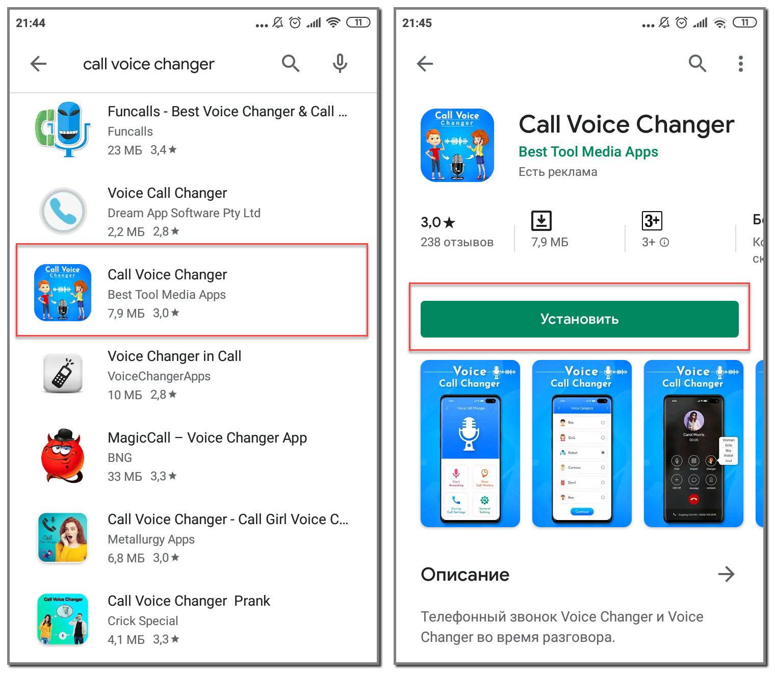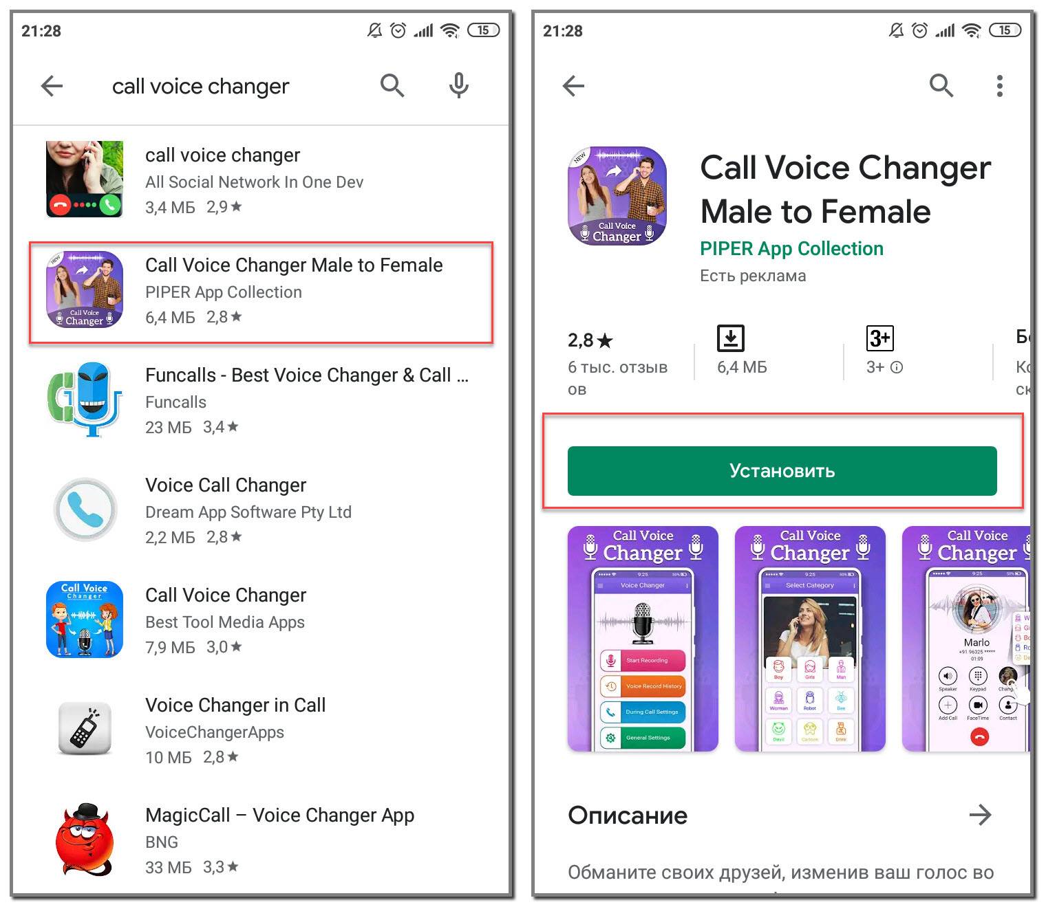 - Вводим в поиске Play Маркета Call Voice Changer.