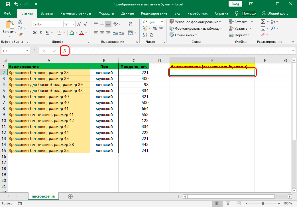 Заглавные и строчные буквы в Excel приходится преобразовывать совсем по-другому, а именно с помощью функций.