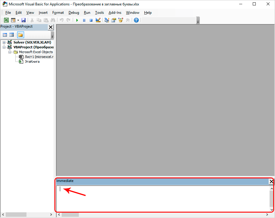 - Открываете Excel, нажимаете Alt+F11, откроется окно Visual Basic.