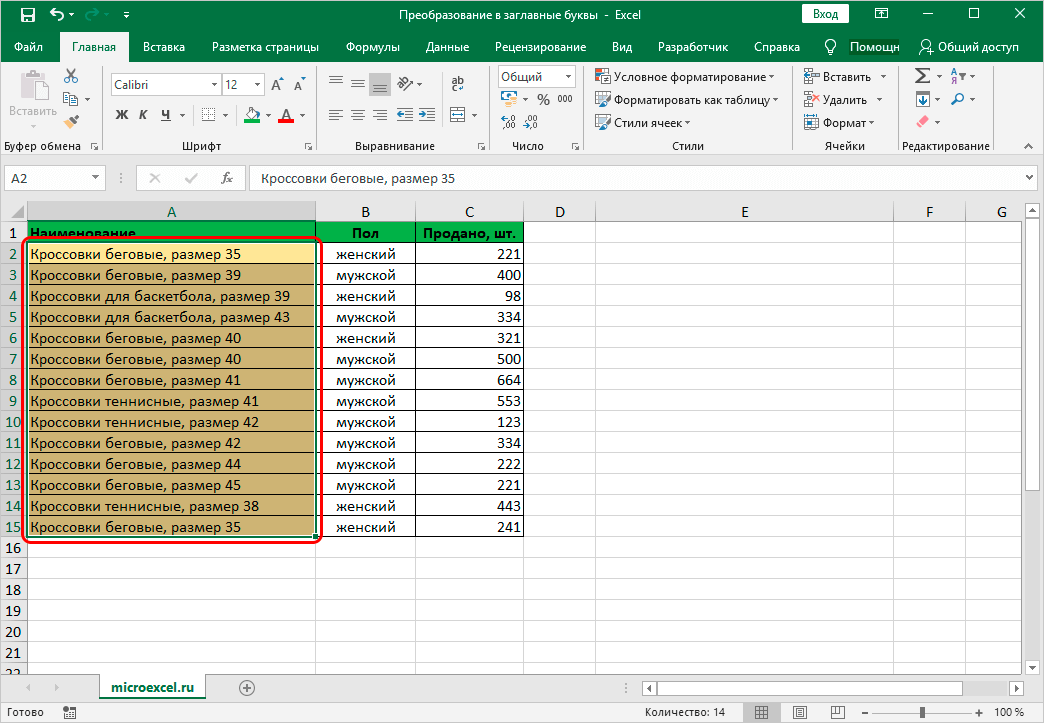 . Эта формула преобразует имя в ячейке A2 из прописных в надлежащий регистр. Чтобы преобразовать текст в нижний регистр, вместо него введите = снизу (a2) . Используйте = Upper (a2) в том случае, если нужно преобразовать текст в верхний регистр, заменив ячейку A2 на соответствующую ссылку.