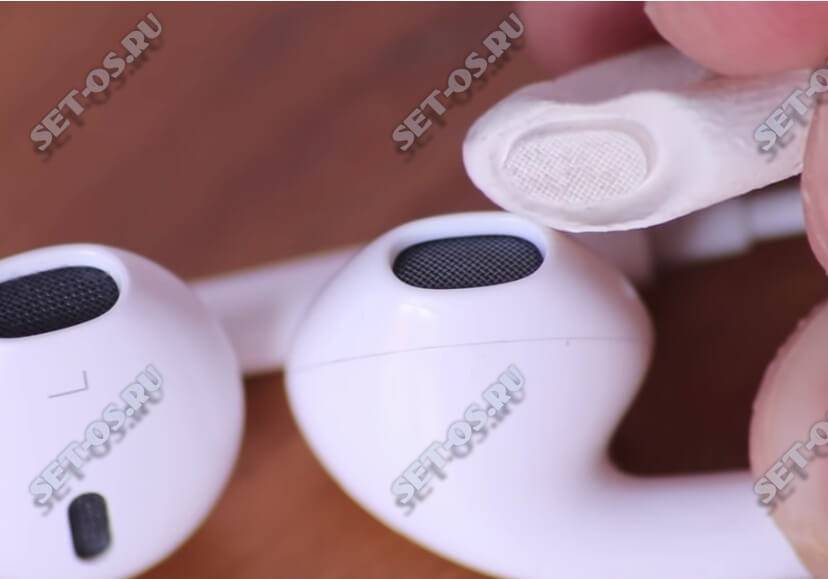 Чистить наушники от iPhone серии Airpods достаточно сложно, поскольку они являются беспроводным изобретением со сложной конструкцией и мелкими деталями. Максимальное количество грязи концентрируется на сетке, но устройство поддается чистке перекисью водорода или спиртом. Перед процедурой накопленная грязь удаляется зубочисткой. Для протирания решеток динамиков используют ватную палочку, которая погружается в раствор спирта.