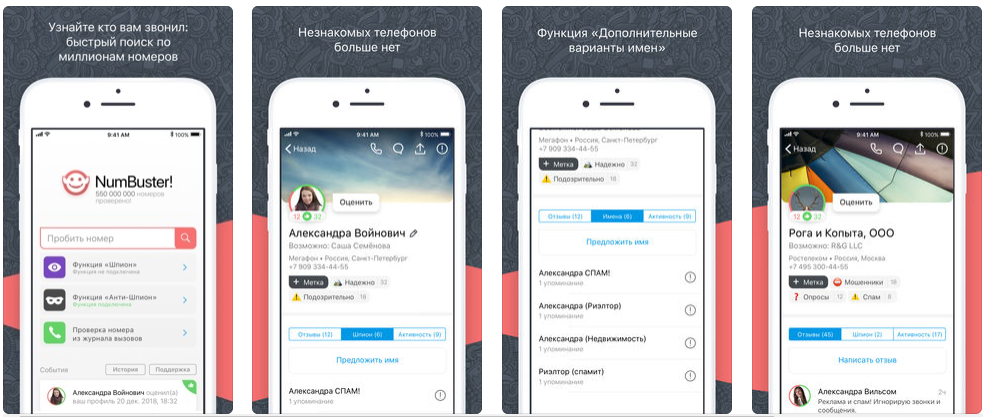 Поиска по имени или по номеру телефона в приложении нет. Также Numbuster может скрывать данные о вашем номере. И покажет, как вы записаны у друзей.