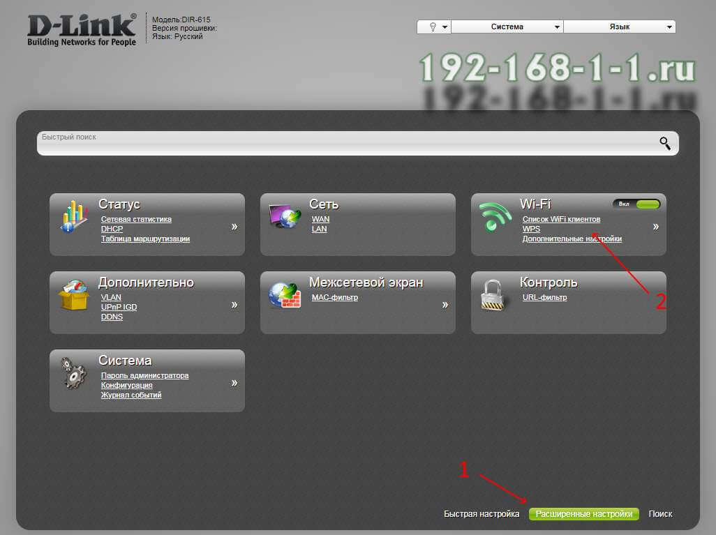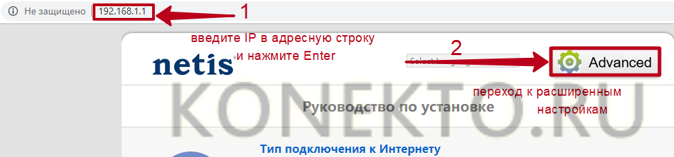 - Перейти в браузерной строке по адресу 192.168.1.1;