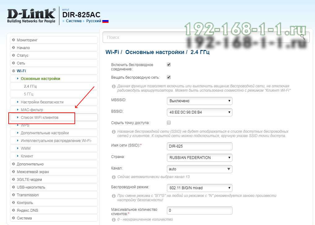D-Link: «Расширенные настройки» → «Статус» → «Клиенты».