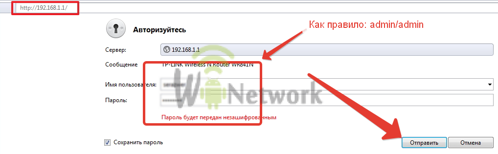 Данные с тыльной стороны роутера вводим в браузере, подтверждаем вход.