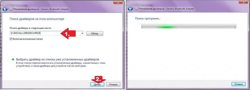 После этого указываем путь доступа к драйверам на диске, нажимаем кнопку «Далее» и дожидаемся, пока они автоматически установятся на компьютер: