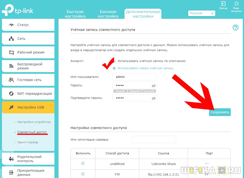 - Доступ к USB диску (флешке) через роутер TP-Link по сети