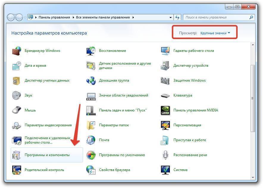 Нажать «Пуск» и открыть раздел «Панель управления». Для удобства просмотра можно выбрать режим «Мелкие значки».