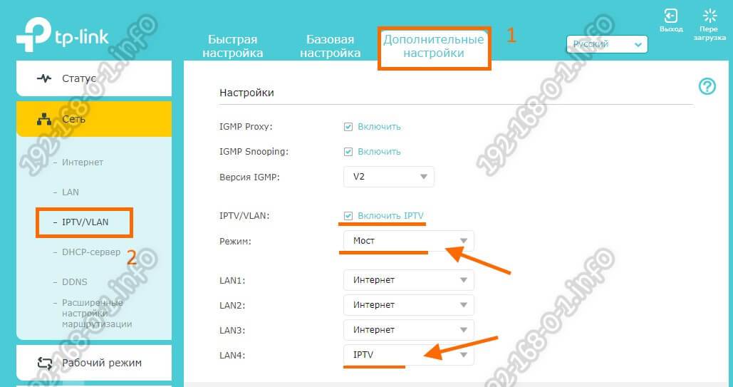Как настроить порт IPTV ТП-Линк и Арчер