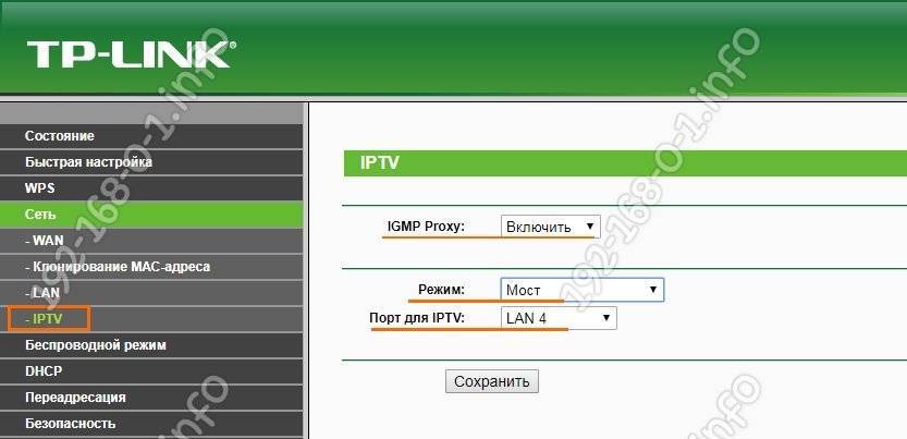 5. Сохраните настройку IPTV на роутере TP-Link нажав кнопку «Сохранить».