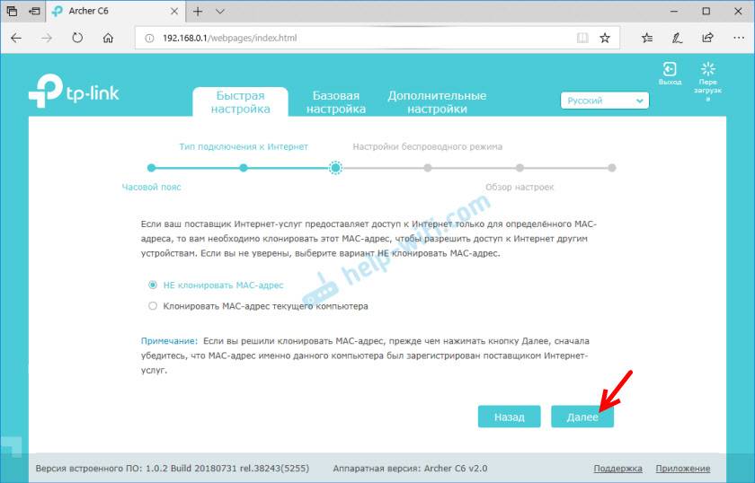 Вход в веб-интерфейс TP-Link Archer C6 и быстрая настройка