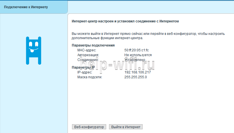 После этого Ваш роутер подключится к интернету и получит внутренний адрес.