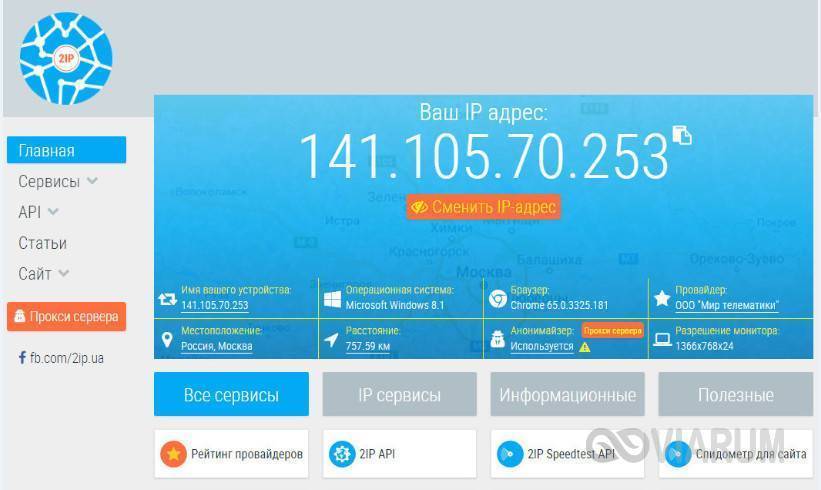 - Определите ваш внешний IP адрес на сайте 2ip.ru и запишите его;