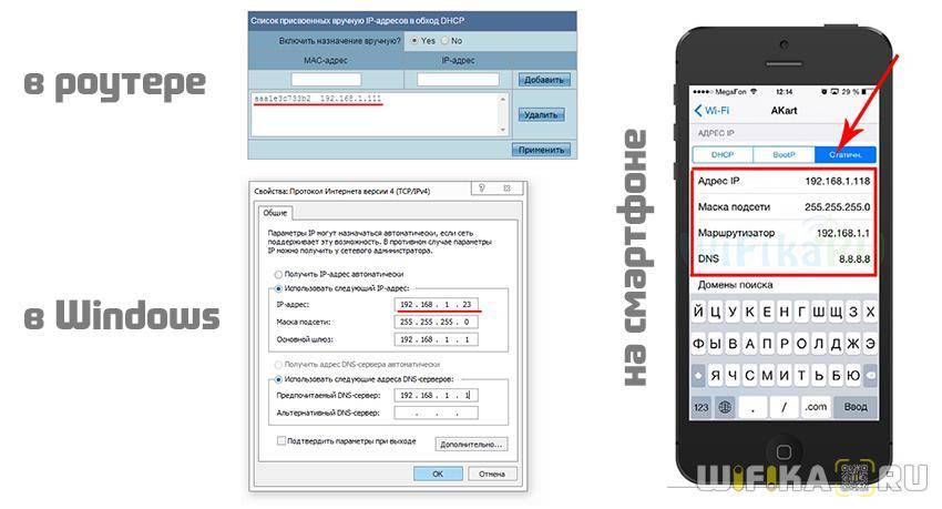 Также есть возможность сделать из динамического статический ip адрес, то есть постоянный, привязанный только к одному устройству — в настройках роутера или на самом компе, смартфоне, ТВ, IP-камере и т.д.