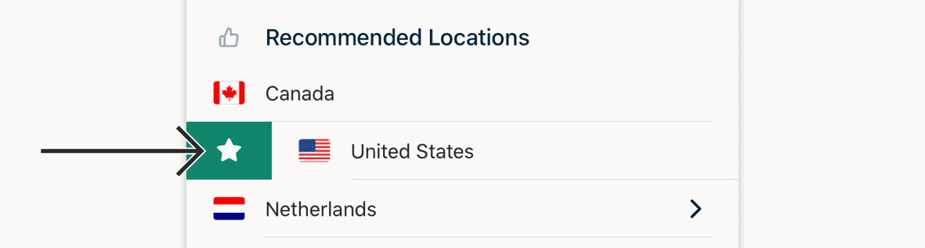 Чтобы подключиться к серверу в другой локации, коснитесь панели выбора локаций (под кнопкой «ВКЛ»).