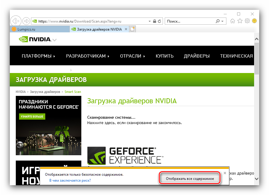 - Веб-инструмент НВИДИА реализован по технологии, которая больше не поддерживается сторонними браузерами. Единственное решение, в котором веб-сервис работоспособен – Microsoft Internet Explorer. Это приложение поставляется в комплекте с операционной системой Windows, но если вы не можете его найти, воспользуйтесь инструкцией по восстановлению.