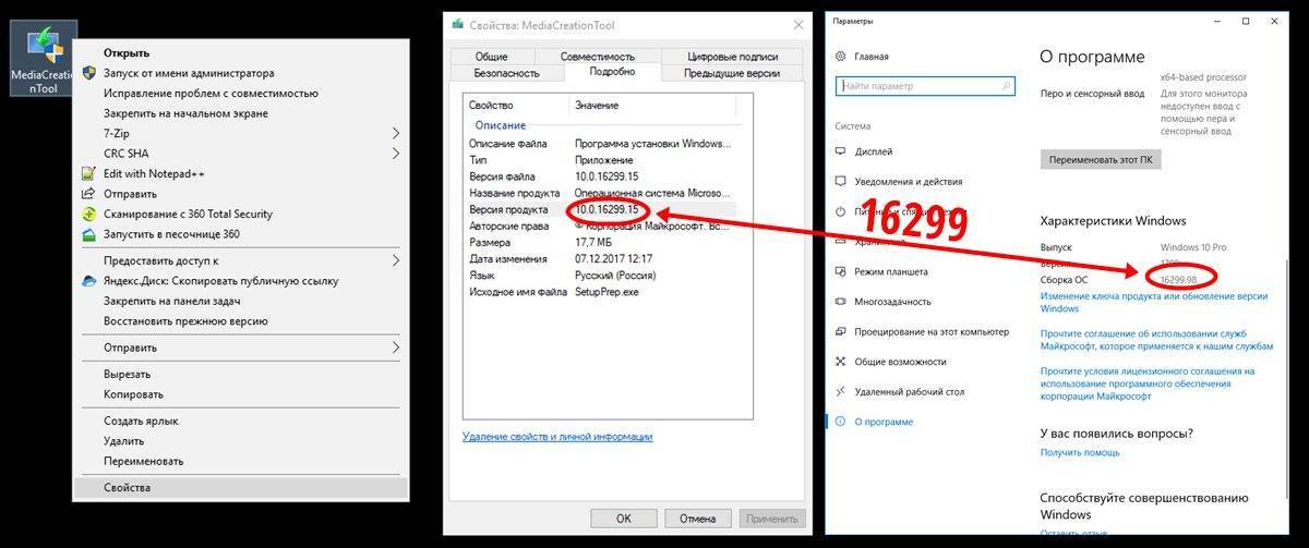 - Кликаем правой клавишей мыши на скачанном файле программы Media Creation Tool, выбираем «Свойства» и переходим во вкладку «Подробно». Смотрим сюорку.
